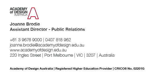 joanne.brodie at academyofdesign.edu.au or 9676 9000